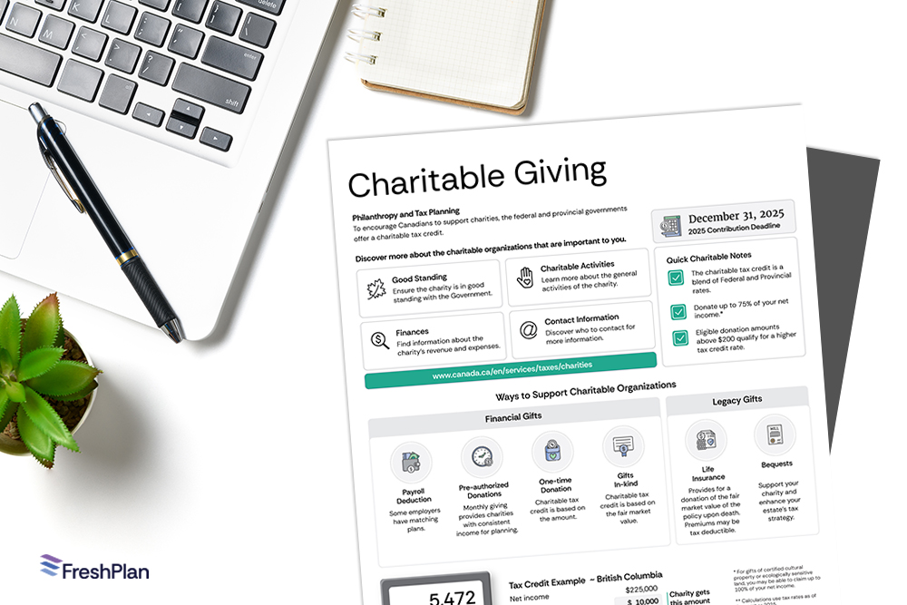 Giving is something that many Canadians feel provides a sense of fulfillment and making a difference by contributing to causes they care about. This FreshPlan infographic is a way to get clients thinking about how they want to pursue this.